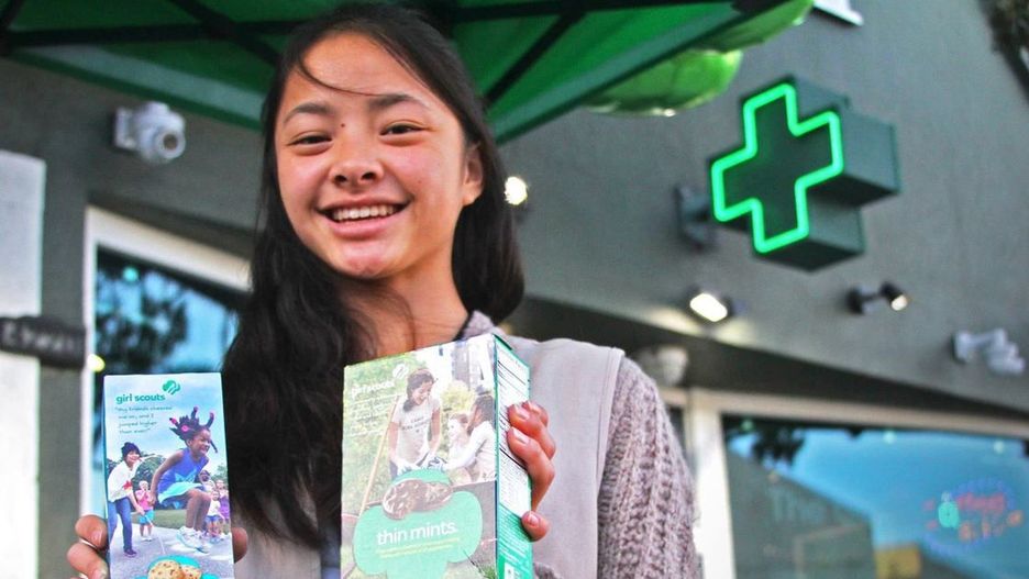 - Girl Scout Sells Cookies Outside Medical Marijuana Clinic [https://time.com/9091/smart-cookie-girl-scout-sets-up-shop-outside-marijuana-dispensary/]